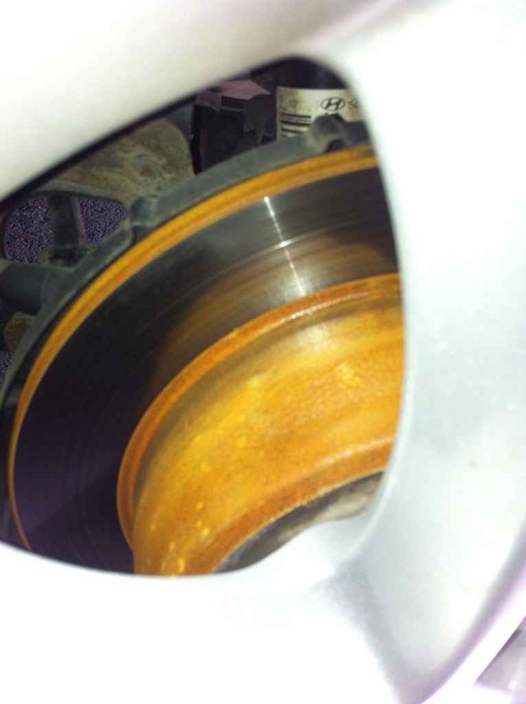 Köpte just en 2012 cia ceed. Den förra ägaren hade just bytt bromskivor runt om. När jag kom hem (såg inte detta i den dåliga belysningen i säljarens lokaler) så såg jag att alla skivor var tokrostiga. Det enda som inte var rostigt var slitytan...