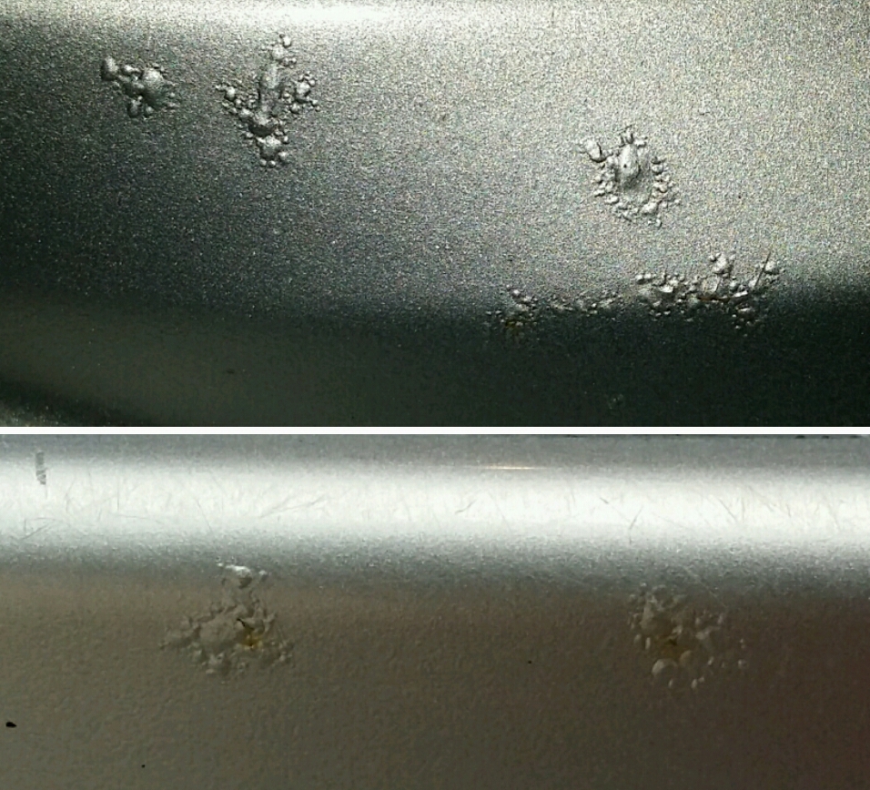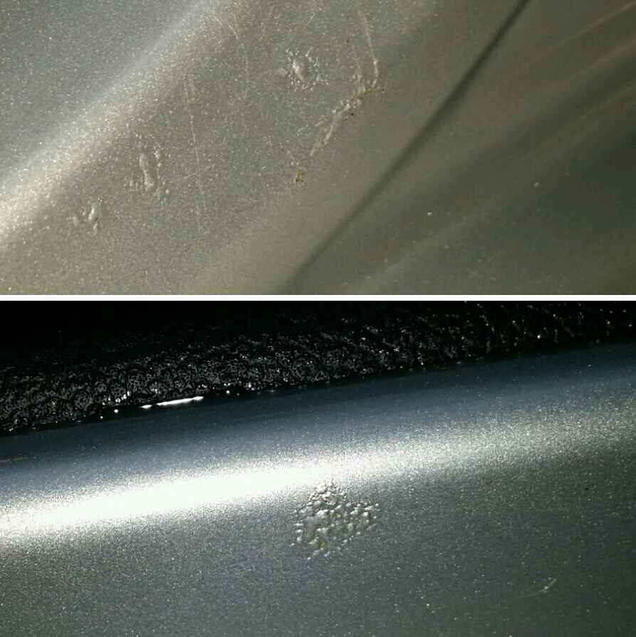 Men jag kan inte se några speciella skador som uppkommit av grus eller liknade.. ser ut som bubblar ( galvsläpp)? Är rädd det ska spricka så småningom och bli värre.