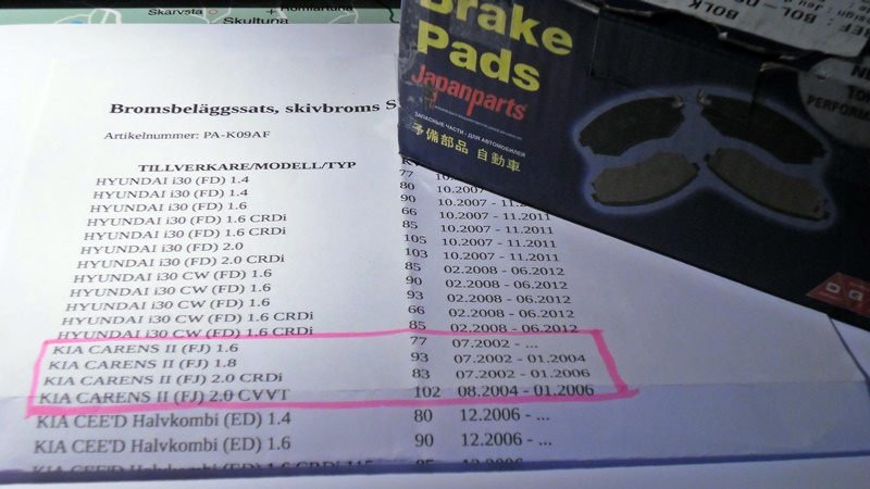 Jag har i mitt ägo en sats Bromsklossar (nya i förpackning) för framhjul. Samt ett Luftfilter (nytt i förpackning) för rubricerad Kia Carens. Lägg ett bud och prylarna är dina, men du står själv för leveranskostnaderna om du inte hämtar. :thumbup: :thumbup: