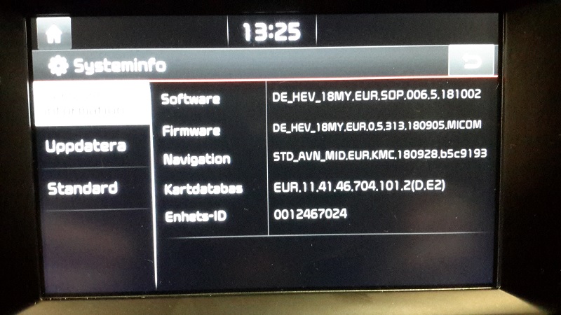 Jag hade min NIRO inne på 1-års service igår 2018-10-24 och fick därefter följande utseende på Systeminfot.