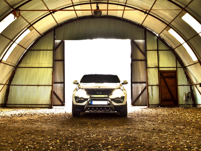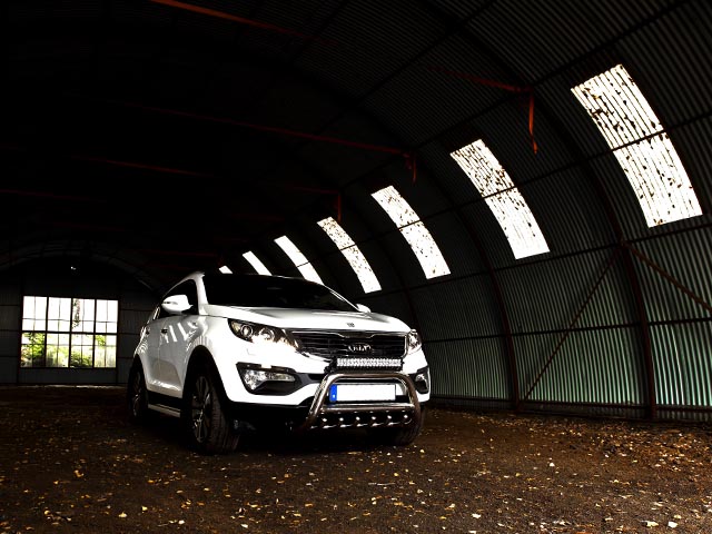 Några bilder på vår Sportage tagna av Per (http://www.oljekyld.se) i en gammal övergiven maskinhangar ute i skogen norr om Stockholm: