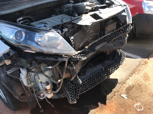 Bilen blev så illa tilltygad att den ska lösas in. Va och kollade på bilen igår och såg att till och med motorn hamnat på sniskan.