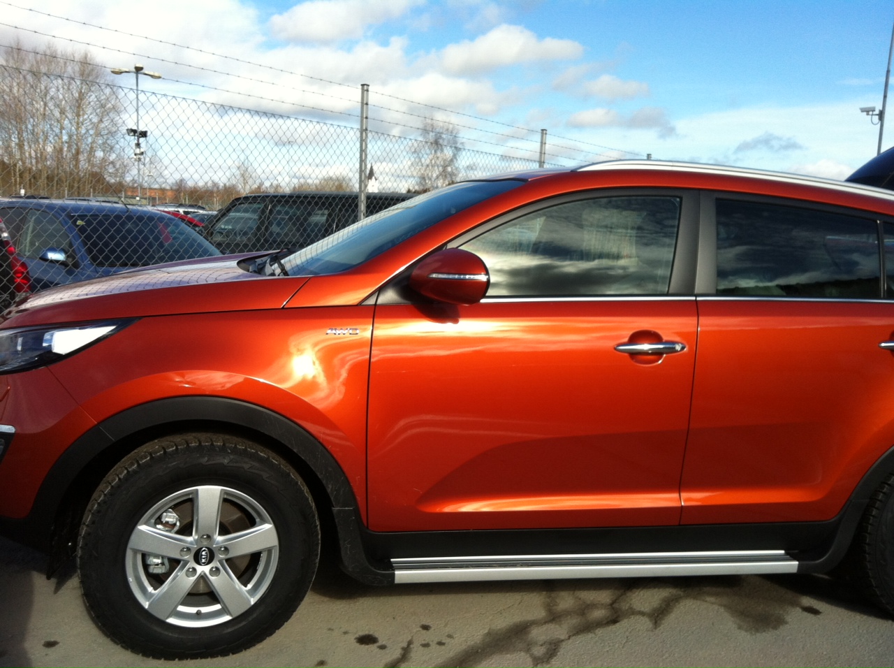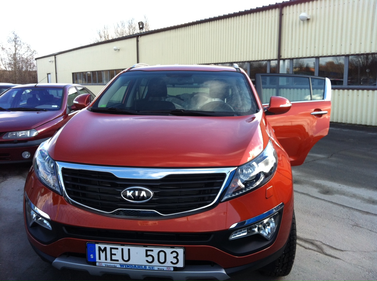 Precis kommit hem med min nya Sportage 2,0 bensinare i Techno Orange med sidesteps och Hasplåt fram och drag. Hämtades i Nora på Windahls bil, 65 mil hem men det var det värt.