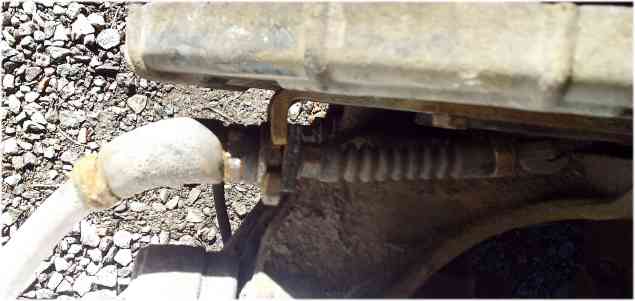 Med hjälp av en stor skruvmejsel instoppad uppifrån kunde jag räta ut vinkeljärnet så att det blev 90 grader igen, var böjt till höger och in mot bilen, ut från bromsskölden innan min uträtning